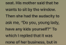 Sounds like the mother wanted to sit near the window and was using the son as an excuse.