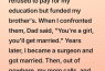 But I couldn’t stop thinking about Mark. He wasn’t my brother. He was a stranger. A sick stranger who had been raised in a house of lies and was now paying the price. He was the ‘better investment’ who had yielded no returns.