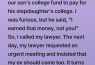 Discuss with your ex how this financial turmoil might affect your son’s education and ensure that both of you are on the same page regarding his college fund. Transparency going forward isn’t optional—it’s necessary.