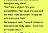 “Sal,” Maria sighed, “it’s your presentation. Your buns are stale and the meat looks shriveled. People eat with their eyes first!”