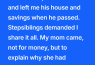 Almost immediately after that, my phone was flooded with angry messages from my step-siblings, all insisting that I share what I had inherited. Some of them were demanding, others tried to guilt me, saying “family takes care of family.” A few acted like they had always loved me, even though most of them barely spoke to me before. I didn’t reply to any of them—until my mom reached out. She didn’t ask for money; instead, she told me the truth about why my grandparents had stepped in, and with every word, it felt like the ground under me was shifting.