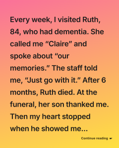 I offered her help inside. She stared at me, stunned. Then, slowly, she took my hand.