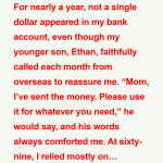 For nearly a year, not a single dollar appeared in my bank account, even though my younger son, Ethan, faithfully called each month from overseas.