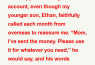 “Mom, I sent the transfer last week,” he said. “Did it show up yet?”