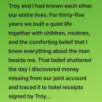 The next morning, Melissa went to the bank and withdrew money from her own account to repay every dollar she had taken. She returned home with the receipts and placed them gently in front of me.