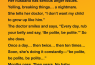 The doctor smiles and says, “Every day, rub your belly and say, ‘Be polite, be polite.’