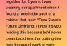 “I read the note and brought it to show to him and hear his response. He immediately ripped it up and said not to listen to it, that she was crazy and untrustworthy. I told him that the fact that he hasn’t found the note in the 5 years since they broke up is a red flag to me because it does mean he’s never cleaned back there and that he has been cleaning less and less since I moved in.