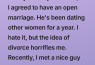 I really love my husband, so I agreed to have an open marriage. He’s been dating other women for a year. I hate it, but the idea of divorce horrifies me.
