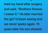 The kid handed me a college application. Asked if I could be his reference. Then he goes, “I want to study medicine… because of what you did.” Didn’t expect that. Not after all those years. I just told him, “Yeah… of course.” And we’ve been in touch ever since, like a thread from the past quietly refusing to break.