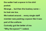 Some friends and I tried a fancy new restaurant and noticed something odd—the waiter had a spoon in his shirt pocket.