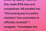I felt a surge of hot, righteous anger boiling up in my chest. I had worked sixty-hour weeks for the last year to earn that Senior Analyst title, and they were taking it away over a five-minute conversation. My fingers hovered over the keyboard for only a second before instinct took over. I hit reply, CC’ing the department head and the regional director. I snapped, “Investigate the pay gap instead of punishing transparency! If there’s a $15k difference for the same role, that’s the real policy failure.” The moment I sent it, the office seemed to hold its breath—as if I had just triggered something irreversible.