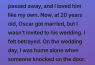 I didn’t guilt him. I simply nodded, went to my room, and let the silence do what it does best — echo. The house felt different that night, like something had quietly shifted out of place. On the wedding day, I stayed home, pretending to be busy, pretending not to imagine the ceremony. But imagination has a way of slipping in through the cracks. I pictured the music, the laughter, the photographs — and in every version, I searched for myself and came up empty.