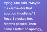I was diagnosed with infertility after years of trying. It shattered me. I finally opened up to my mom, hoping for comfort. She said, “Well, maybe it’s karma for getting that abortion in college. Life has a way of teaching us lessons.”