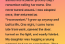 I remember the linoleum floor, cold through the thin soles of my shoes. And I remember the plastic grocery bag—translucent, crinkled—stuffed with my dirty clothes. Socks turned inside out.
