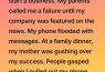 I left school to chase my own path, selling custom gear from my small flat. My mom, Martha, called it a childish waste. My dad, Bill, said I’d regret not taking their money for college. For three years, holidays were strained, calls went ignored. Then the story hit the major news site. Overnight, my small business blew up. My phone never stopped ringing. At our family dinner, Martha was gushing, wine glass in hand. “Our brilliant David!” she cried, pulling me into a hug. My aunts and uncles watched. Martha leaned in, whispering about how my sister, Susan, could really use a “little help” with her loans now that I was rich. Everyone was smiling, acting like the past three years never happened. People gasped when I nulled out my phone and brought up a screenshot. It wasn’t one of the million new texts. It was the last message I got from Mom, Martha, right after I told them I was leaving school to start my online store. Dated three years back, it read: “IF YOU CHOOSE THIS FOOLISH PATH, DON’T EXPECT A PENNY. YOU’RE DEAD TO US.” And below that, a photo of my first tiny office, with an eviction notice taped to the door. Under the notice, clearly visible, was a handwritten note from Martha, pinned with a rusty tack, stating…