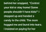 I’ve been in that position before, not as a mom, but as a person who just felt like the world was too loud and too heavy and one more push would make everything collapse. I stepped up and slowly reached into the impulse rack, pulling out a candy—a small strawberry drop in a crinkled wrapper—and handed it to the child. I made a silly face, the kind that usually makes my nephew laugh without fail, and for a second, the boy stopped mid-scream, his teary eyes locking onto the bright wrapper like it was something magical. The silence that followed wasn’t loud or dramatic, but it was enough—just enough—to let the mom catch her breath like she had been drowning.