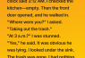 When Dave came home from his midnight rendezvous, he found me in the kitchen. “You’re up late,” he said, avoiding my eyes.