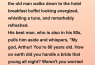 Arthur winks and says, “I knew I couldn’t do the work myself, so I subcontracted the labor, stayed on as the consultant, and I still got to keep all the benefits!”😂