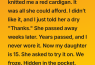 This moment—years too late—taught me something unforgettable: be kind to people, even when you’re distracted, even when you think you have time. Love doesn’t always come wrapped the way we expect. That cardigan was never just a sweater.