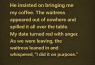 As we were leaving, the waitress leaned in close and whispered, “I did it on purpose. He’s not who you think he is.”