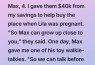 “From now on, every dollar I save goes into an account for Max. When he turns 18, he’ll receive it directly from me. Not through you.”
