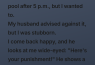 My husband advised against it, but I was stubborn. I come back happy, and he looks at me wide-eyed: “Here’s your punishment!” He shows a video on his phone: I’m swimming, and suddenly, something moves in the corner of the screen. The way his voice trembled slightly made me pause, but I still smiled, brushing it off—at least at first.