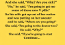 She looked at him with a perfectly straight face and said, “I’m going to the doctor too.”