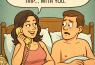 He bursts through the front door, finding his wife in a bathrobe, her hair tousled and face flushed.
