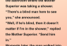 “Well, if he’s blind, then it doesn’t matter if I’m in the shower,” replied the Mother Superior. “Send him in.”