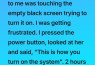 I was getting frustrated. I watched her for 5 minutes doing the same thing, tapping and swiping like it owed her something. I pressed the power button, looked at her and said, “This is how you turn on the system.”