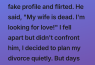 I was using my husband’s laptop and I discovered that he is on a dating site. He was talking to women. I made a fake profile and started to flirt. He said, “My wife is dead. I’m looking for love!”