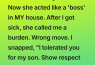She had been playing the villain to protect both the men in her life. She let me hate her so I wouldn’t have to feel the shame of being broke. She let me think she was a “bossy” intruder so I wouldn’t notice she was paying the bills I couldn’t afford. It was the most selfless thing anyone had ever done for me, and I had responded with venom.