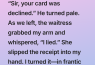 I couldn’t be more grateful to that waitress. Her courage, kindness, and quick thinking saved me from something terrible. I realized she had staged the declined card incident just to have an excuse to slip me that message.