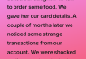 One day, we got hungry and asked our daughter-in-law to order some food. We gave her our card details. A couple of months later we noticed some strange transactions from our account. We were shocked to discover that she had spent almost $8,000 on things we didn’t recognize—makeup subscriptions, boutique clothes, expensive spa appointments, even a few designer handbags.