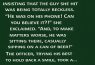“He was on his phone!” she shouted. “And to top it off—he was just sitting there, drinking a beer!”