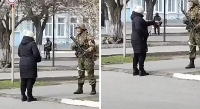 خاتون ہتھیاروں سے لیس فوجی کے سامنے ڈٹ کر کھڑی ہوئیں اور اس سے سوال کیاکہ وہ اس کے ملک میں کیا کررہے ہیں؟ خاتون کے غصے کو دیکھ کر روسی فوجی نے انہیں تحمل کا مشورہ دیا۔خاتون نے پہلے اپنا غصہ روسی فوجی اہلکار پر نکالا اور پھر جاتے جاتے پلٹ کر کہا کہ ‘آپ سورج مکھی کے بیج اپنی جیب میں رکھیں تاکہ یہ بیج آپ کے مرنے کے بعد یوکرین کی زمین پر اگیں۔دوسری جانب روسی حملے کے بعد امریکا نے یوکرین سے متعلق اپنے خدشات کا اظہار کیا ہے۔