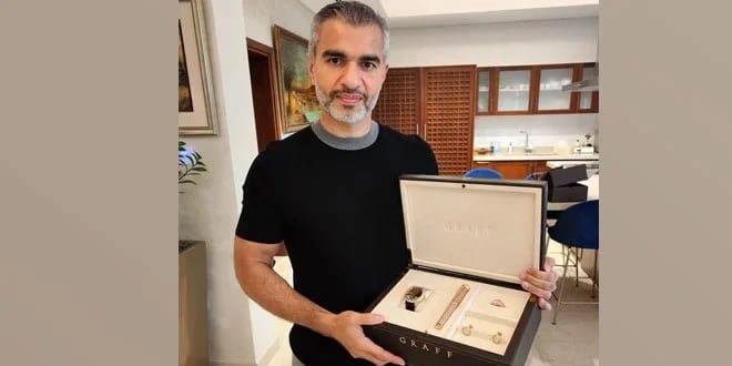 لندن(پی این آئی) دبئی میں مقیم ارب پتی تاجر عمر فاروق ظہور اس انکشاف کے بعد پاکستانی خبروں کی سرخیوں میں ہیں کہ انہوں نے دبئی میں ایک لین دین کے دوران سابق وزیراعظم عمران خان کی توشہ خانہ کی قیمتی گراف گھڑی، وہ مشہور گھڑی جو سعودی ولی عہد شہزادہ محمد بن سلیمان نے عمران خان کو تحفے میں دی تھی، فرح خان سے تقریباً 2 ملین ڈالرز میں خریدی تھی۔تو عمر فاروق ظہور کون ہیں؟ وہ پرائیویٹ جیٹ طیاروں میں کیسے اڑان بھرتے ہیں