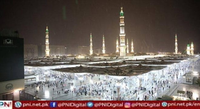 مدینہ منورہ (پی این آئی) مقدس شہر مدینہ منورہ ریجن میں طوفانی بارش کی اطلاعات ہیں۔۔۔ بارش اتنی شدید تھی کہ اس کے نتیجے میں پیدا ہونے والا سیلابی ریلا اونٹوں سے لدے ٹرک کو بہا کر لے گیا ہے۔۔۔۔سعودی میڈیا رپورٹس کے مطابق اونٹوں سے لدے ٹرک کے بہنے کی ویڈیو سوشل میڈیا پر وائرل ہوگئی ہے۔۔۔۔ بتایا گیا ہے کہ بارش کے بعد القصیم کا علاقہ پانی میں ڈوب گیا اور ندی نالوں میں طغیانی آ گئی ہے۔۔۔