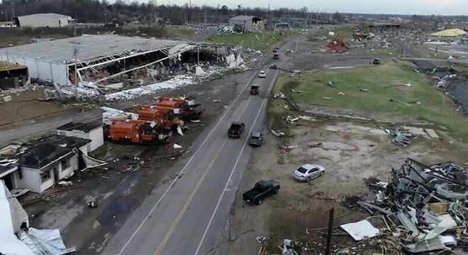 مقامی میڈیا کی تصاویر اور فوٹیج میں دکھایا گیا ہے کہ گرے ہوئے درختوں کی وجہ سے سڑکیں بند ہیں اور گھروں کو نقصان پہنچا ہے۔حکام نے بتایا کہ انڈیانا اور ملحقہ ریاستوں میں بھی طوفانی بگولوں کی اطلاع ہے۔ انڈیانا ریاست پولس کے جنوب میں واقع بارگرسویل قصبے سے فائر چیف ایرک فنکھاؤسر نے کہا کہ وہاں کوئی جانی نقصان نہیں ہوا لیکن خراب موسم کے بعد تقریباً 75 گھروں کو جزوی یا شدید نقصان پہنچا ہے۔رپورٹ میں بتایا گیا کہ وسطی انڈیانا میں ان لوگوں کے لیے ہنگامی پناہ گاہیں قائم کی گئیں جن کے گھر تباہ ہو گئے تھے۔ تقریباً 50 لاکھ یوٹیلیٹی صارفین کو امریکی مڈویسٹ اور ساؤتھ میں موسم کی وجہ سے بجلی کی بندش کا سامنا کرنا پڑا۔