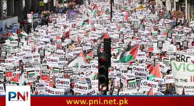 غیر ملکی میڈیا کے مطابق لندن اور مانچسٹر سمیت برطانیہ بھر میں ہزاروں افراد فلسطینیوں کی حمایت میں سڑکوں پر نکل آئے اورغزہ پر گزشتہ سات روز سے جاری اسرائیل کی وحشیانہ بمباری فوری طور پر بند کرنے کا مطالبہ کیا۔ لندن میں ہزاروں افراد وزیراعظم کی رہائش گاہ ٹین ڈاؤننگ اسٹریٹ اور بی بی سی ہیڈکوارٹر کے باہر جمع ہوئے اور فلسطین کی آزادی کے حق میں نعرے لگائے۔ مظاہرین نے فلسطینی پرچم اورحمایتی پلے کارڈز بھی اٹھا رکھے تھے۔ درجنوں پولیس افسران وزیر اعظم کی رہائش گاہ کے گیٹ کے باہر تعینات تھے۔ مظاہرین نے ’’رشی سونک شرم کرو‘‘ سویلا بریورمین شرم کرو کے نعرے بھی لگائے۔ لیورپول، برسٹل، گلاسگو اور نیو کیسل میں بھی ہزاروں افراد نے فلسطین کے حق میں احتجاج کیا جس میں ہر عمر کے مرد، خواتین اور بچے شامل تھے۔