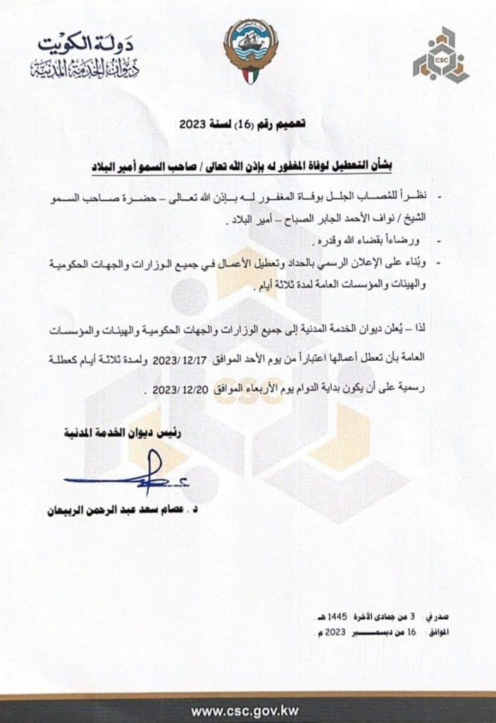 کویتی میڈیا رپورٹس کے مطابق 86 سالہ امیر شیخ نواف الاحمد الصباح نومبر میں ہسپتال میں داخل ہوئے تھے۔۔۔۔کویت کے امیر شیخ نواف الاحمد الصباح کو لاحق عارضے کی وضاحت نہیں کی گئی ہے۔۔۔۔ میڈیا رپورٹس کے مطابق کویت کے سرکاری ٹی وی پر پروگرام روک کر قرآنی آیات نشر کی گئیں۔۔۔۔۔