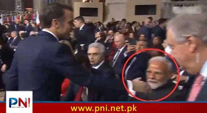 بھارتی وزیراعظم نے ہاتھ ملانے کی کوشش کی مگر فرانسیسی صدر نے نظر انداز کردیا۔ فرانسیسی صدر، مودی کے ساتھ بیٹھے اقوام متحدہ کے سیکرٹری جنرل انتونیو گوتریس سے بھی ملے۔ اس موقع پر وہ یورپی کمیشن کی صدر ارسلا وون دیرلائن سے بھی بہت تپاک انداز سے ملے۔سوشل میڈیا پر وائرل اس ویڈیو نے بھارتی وزیراعظم کا دنیا بھر میں مذاق بنا دیا۔
