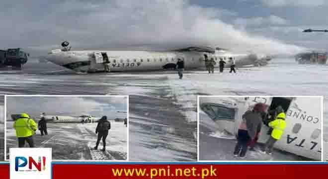 کینیڈا کے شہر ٹورنٹو میں پیئرسن ائیرپورٹ پر مسافر طیارہ لینڈنگ کے دوران اُلٹ گیا۔