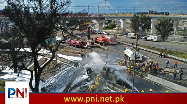 میکسیکو سٹی میں ایک گیس ٹینکر کے الٹنے کے بعد ہونے والے زوردار دھماکے سے ہولناک آگ بھڑک اُٹھی، جس کے نتیجے میں کم از کم 3 افراد جھلس کر ہلاک جبکہ 70 سے زائد زخمی ہو گئے۔