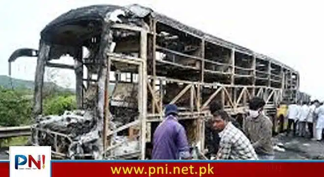 بھارتی ریاست آندھرا پردیش میں ایک دلخراش حادثے میں 20 افراد جان کی بازی ہار گئے جب ایک مسافر بس موٹرسائیکل سے ٹکرانے کے بعد آگ کی لپیٹ میں آگئی۔